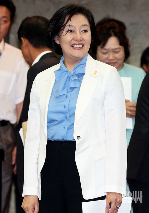 27일 서울 여의도 국회에서 열린 새정치민주연합 의원 워크숍에서 박영선 원내대표가 미소를 짓고 있다.