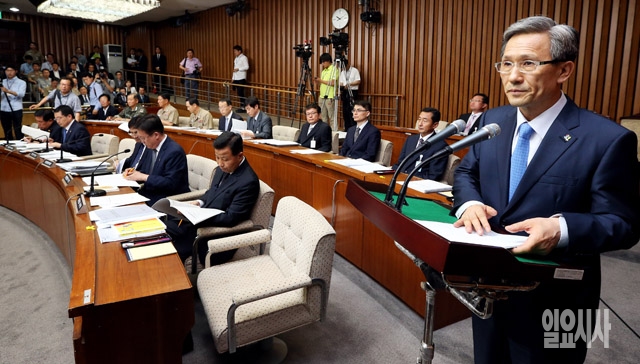 김관진 국방부 장관이 30일 서울 여의도 국회에서 열린 세월호침몰사고진상규명국정조사 특별위원회 전체회의에서 기관보고를 하고 있다.