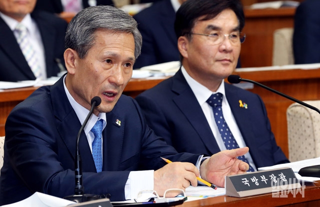 김관진 국방부 장관이 30일 서울 여의도 국회에서 열린 세월호침몰사고진상규명국정조사 특별위원회 전체회의에서 의원들의 질의에 답하고 있다.