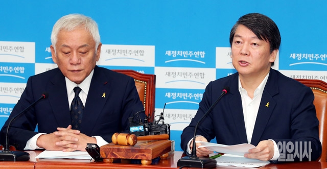 안철수 새정치민주연합 공동대표(오른쪽)가 30일 서울 여의도 국회에서 열린 최고위원회의에서 모두발언을 하고 있다.