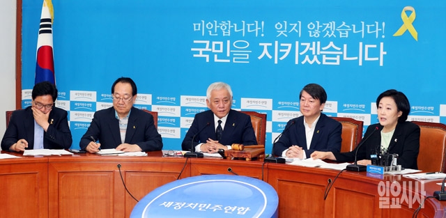 박영선 새정치민주연합 원내대표(맨 오른쪽)가 30일 서울 여의도 국회에서 열린 최고위원회의에서 모두발언을 하고 있다.