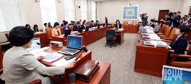 30일 서울 여의도 국회에서 열린 여성가족위원회 전체회의에서 유승희 위원장이 의사봉을 두드리고 있다.