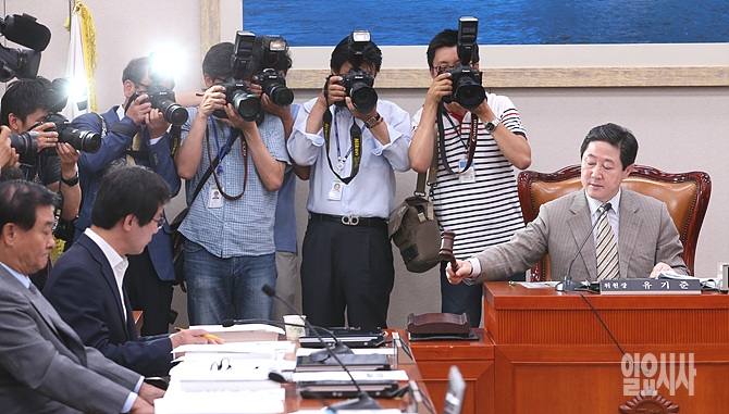 유기준 국회 외통위원장이 30일, 국회에서 외교통일위원회 전체회의에서 의사봉을 두드리고 있다.