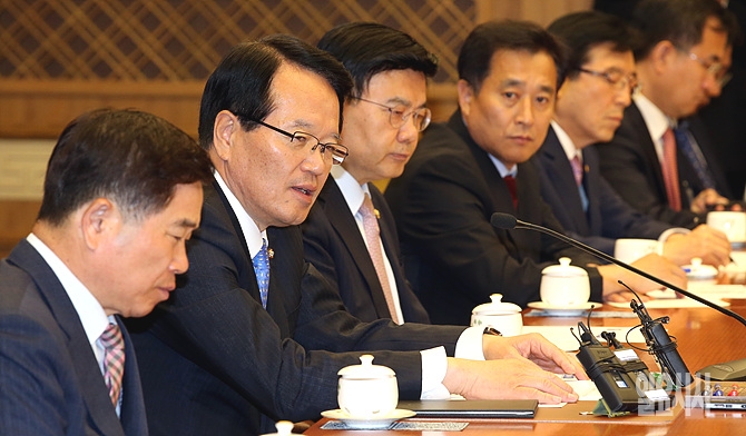 정의화 국회의장이 30일, 서울 여의도 국회접견실에서 열린 '남북 화해ㆍ협력 자문위원회' 위원장 및 위원들의 위촉장 수여 자리에서 발언하고 있다.