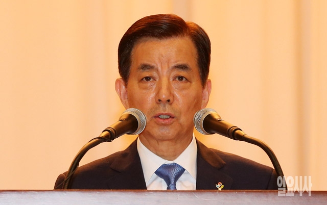 30일 서울 용산구 국방부에서 열린 제43·44대 국방부 장관 이·취임식에서 한민구 신임장관이 취임사를 하고 있다.