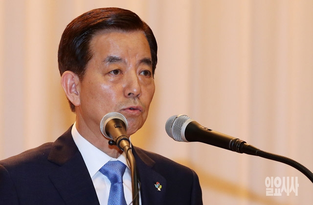30일 서울 용산구 국방부에서 열린 제43·44대 국방부 장관 이·취임식에서 한민구 신임장관이 취임사를 하고 있다.