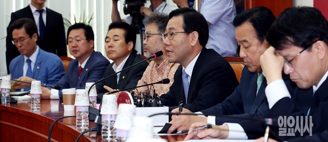 주호영 새누리당 정책위의장이 1일 서울 여의도 국회에서 열린 원내대책회의에서 모두발언을 하고 있다.