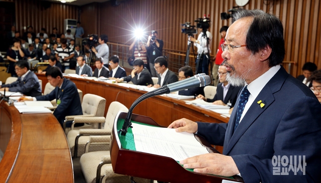 이주영 해양수산부 장관이 1일 서울 여의도 국회에서 열린 세월호침몰사고진상규명국정조사 특별위원회 전체회의에서 기관보고를 하고 있다.