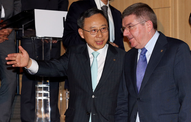 [포토] 토마스 바흐에게 자리 안내하는 황창규