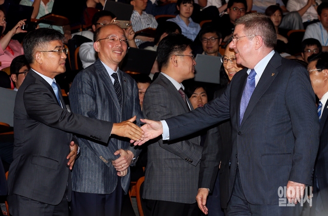 토마스 바흐 국제올림픽위원회(IOC) 위원장이 1일 서울 KT 광화문사옥 올레스퀘어 드림홀에서 열린 2018 평창동계올림픽 통신부문 공식 후원사 협약식에 참석해 관계자들과 인사하고 있다.