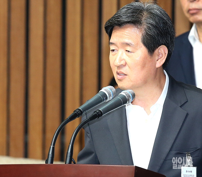 윤학배 해양안전심판원장이 1일, 서울 여의도 국회에서 열린 세월호 침몰사고 진상규명 국정조사 특별위원회 전체회의에서 업무보고하고 있다.