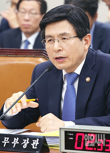 황교안 법무부 장관이 3일, 서울 여의도 국회에서 열린 법사위원회에 출석해 세월호 관련 유병언 검거와 관련한 의원들의 질의에 답변하고 있다.