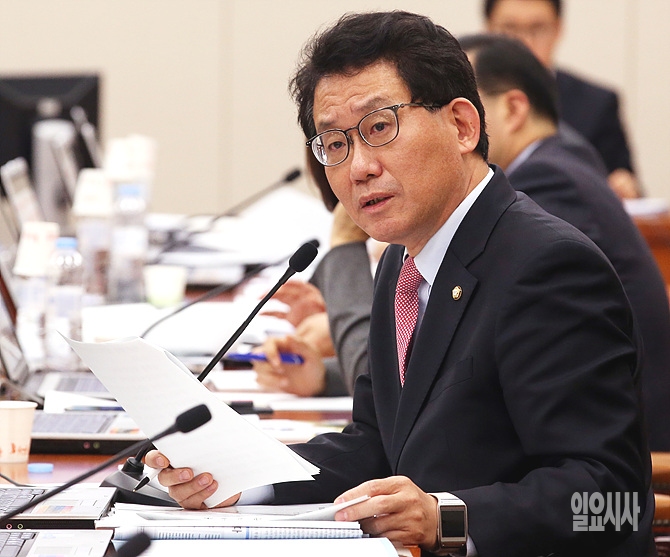 3일, 서울 여의도 국회 교육문화체육관광위원회 회의실에서 열린 전체회의에서 유기홍 새정치민주연합 의원이 김종덕 문체부장관에게 질의하고 있다.