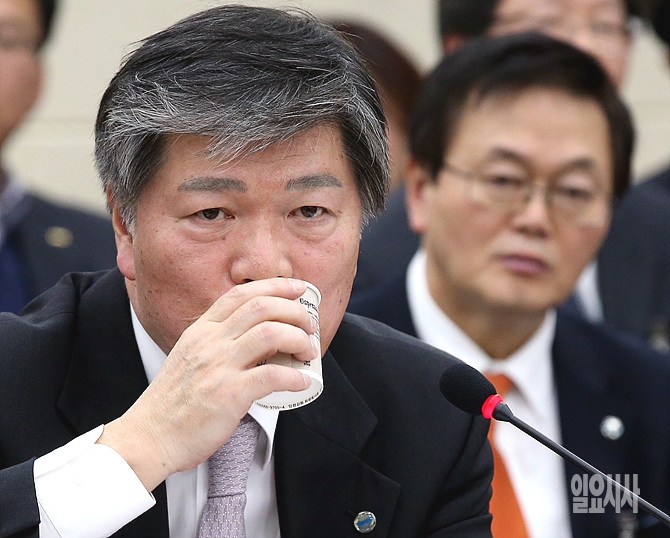 3일, 서울 여의도 국회 미래창조과학위원회 회의실에서 열린 전체회의에서 조대현 KBS 사장이 목이 타는 듯 물을 들이키고 있다.