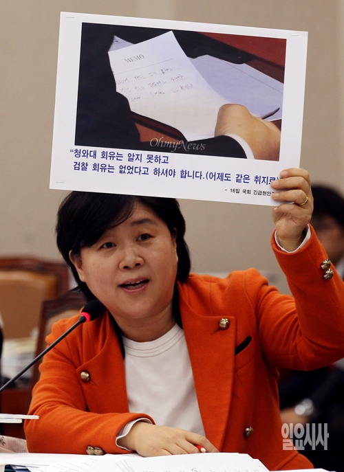 새정치민주연합 서영교 의원이 24일 서울 여의도 국회에서 열린 법제사법위원회 전체회의에서 황교안 법무부장관에게 질의를 하고 있다.