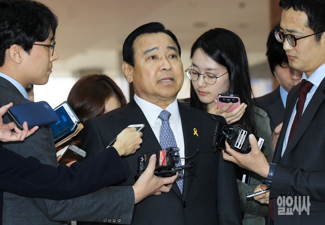 고 성완종 전 경남기업 회장으로부터 선거자금 수수 의혹을 받고 있는 이완구 국무총리가 15일 오전 국회에서 열리는 대정부 질문에 참석하기에 앞서 취재진의 질문에 답변하고 있다.