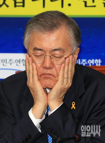 새정치민주연합 문재인 대표가 15일 서울 여의도 국회에서 열린 당 최고위원회의에서 얼굴에 손을 감싼 채 생각에 잠겨있다.