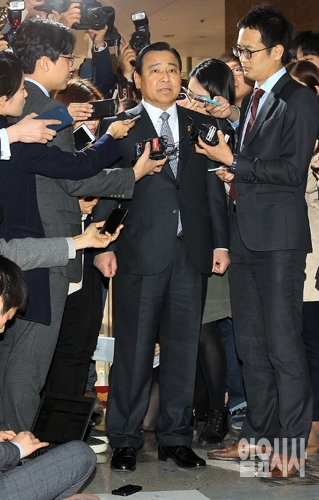 고 성완종 전 경남기업 회장으로부터 선거자금 수수 의혹을 받고 있는 이완구 국무총리가 15일 오전 국회에서 열리는 대정부 질문에 참석하기에 앞서 취재진의 질문에 답변하고 있다.