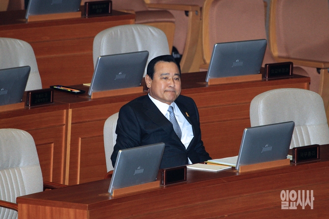 고 성완종 전 경남기업 회장으로부터 선거자금 수수 의혹을 받고 있는 이완구 국무총리가 15일 오전 국회에서 열리는 대정부 질문에 참석하기 위해 국회 본회의장에 앉아있다.