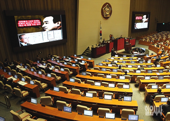 15일, 서울 여의도 국회 본회의장서 국회 대정부질문이 열리고 있다. 이날 이른바 '성완종 리스트'에 이름이 올라 있는 이완구 국무총리의 재보선 관련 거짓 발언이 쟁점이 됐다.