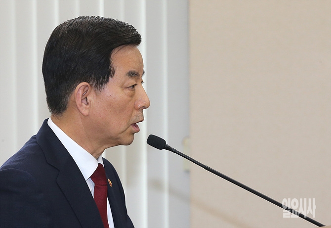 11일, 서울 여의도 국회 국방위원회 회의실에서 열린 국방위 긴급 전체회의 직전, 한민구 국방부장관이 업무보고를 하고 있다.