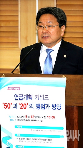 12일, 서울 여의도 국회 의원회관 제1세미나실에서 새정치민주연합 강기정 정책위의장이 '현금개혁 키워드 '50'과 '20'의 쟁점과 방향 긴급 토론회에서 발언하고 있다.