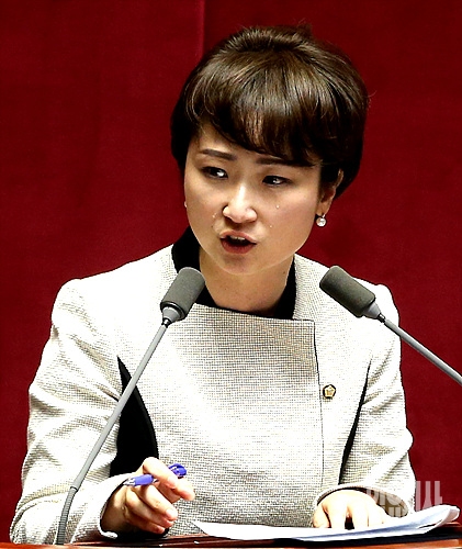 12일 서울 여의도 국회에서 열린 본회의에서 새정치민주연합 이언주 의원이 '일본 정부의 조선인 강제징용시설 유네스코 세계문화유산 등재 추진 규탄 결의안'에 대한 발언 도중 눈물을 흘리고 있다.