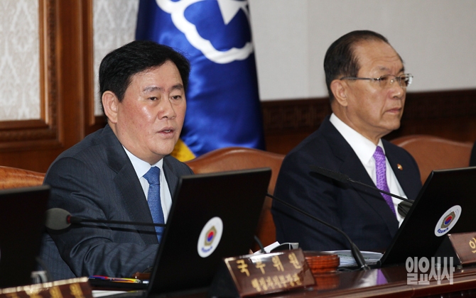 최경환 총리대행 겸 경제 부총리가 13일 오전 서울 세종로 정부서울청사에서 열린 임시국무회의에서 모두발언을 하고 있다.