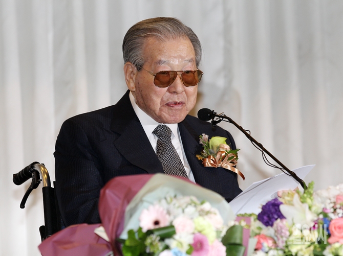 김종필 전 국무총리가 14일 오후 서울 세종문화회관 세종홀에서 열린 '운정 김종필-한국 현대사의 증인 JP 화보집' 출판기념회에서 인사말을 하고 있다.