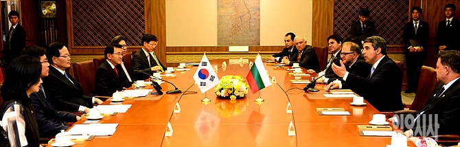 15일, 서울 여의도 국회를 예방한 로젠 플레브넬리에프 불가리아 대통령이 정의화 국회의장단과 환담을 나누고 있다.