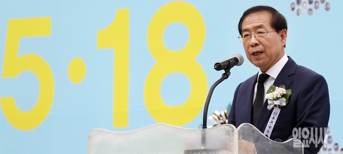 박원순 서울시장이 18일 오전 서울 중구 태평로 서울광장에서 열린 '5·18 민주화운동 제35주년 기념 서울행사'에서 기념사를 하고 있다.