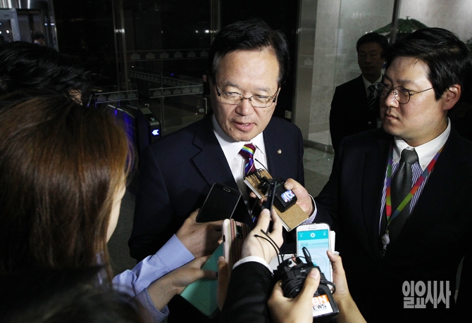 현역의원의 청와대 정무특보 겸직 허용과 관련해 최종 결정권을 갖게 된 정의화 국회의장이 19일  오전 서울 여의도 국회에서 취재진의 질문에 답하고 있다.