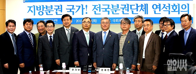 19일, 서울 여의도 국회 의원회관서 새정치민주연합 문재인 대표, 신기남 참좋은정부지방위원장 등이 '전국분권단체 연석회의' 직후, 기념촬영을 갖고 있다.
