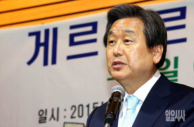 21일, 서울 여의도 전경련회관에서 열린 게르하르트 슈뢰더 전 독일총리 특별대담 직전, 새누리당 김무성 대표가 축사를 하고 있다.