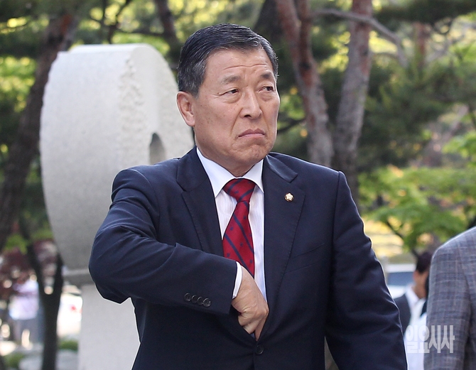 국무총리로 지명된 황교안 법무부 장관의 딸 황성희(29)씨의 결혼식이 23일 오후 서울 서초동 대검찰청 웨딩홀에서 열린 가운데 황진하 새누리당 의원이 결혼식에 참석하고 있다.