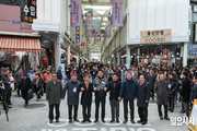 오세훈 서울시장 등 참석자들이 17일 오전 서울 중구 남대문시장에서 열린 ‘남대문시장 아케이드 조성 준공식’에서 기념촬영을 하고 있다. 서울시는 남대문시장 아케이드와 관련해서 디자인 아케이드, 숭례문 조망길, 남산 산책로, 공중가로, 편의공간 및 열린 진입광장, 감성가로 등 6대 혁신 사업을 단계적으로 추진한다고 밝혔다. 가장 먼저 이날 공개된 디자인 아케이드는 남대문시장 중심가로 약 135m 구간에 설치된 지붕으로 채광과 환기, 소음, 안전 등을 고려한 한옥 처마의 디자인을 적용했다. 오 시장은 “남대문시장을 사고파는 공간을 넘어 도심 속 문화공간으로 새롭게 탄생시켜 100년 후에도 찾고 싶은 서울의 대표 명소로 만들겠다”고 밝혔다. 일요시사=천재율 기자(1000jae@ilyosisa.co.kr) <1000jae@ilyosisa.co.kr>
