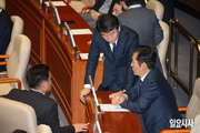 더불어민주당 정청래 대표(왼쪽)가 11일 오전 서울 여의도 국회에서 이석연 국민통합위원장을 접견하며 악수를 하고 있다. 이날 이 위원장은 “정치가 국민에게 희망을 줘야 하는데 그게 아닌 상황”이라며 “정치권이 좀 더 지혜를 발휘해서 국민이 기대를 걸 수 있는 것들을 해줬으면 한다”고 이야기했다. 정 대표는 “이 위원장님과 생각이 같은 부분이 많다”고 답변했다. 일요시사=천재율 기자(1000jae@ilyosisa.co.kr) <1000jae@ilyosisa.co.kr>