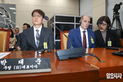 박대준 전 쿠팡 대표(왼쪽)와 해롤드 로저스 쿠팡 임시대표가 30일 오후 서울 여의도 국회에서 열린 ‘쿠팡 침해사고 및 개인정보 유출, 불공정 거래, 노동환경 실태 파악과 재발방지 대책 마련을 위한 청문회’에 참석해 자리하고 있다. 이날 청문회는 과학기술정보방송통신위원회와 정무위원회, 국토교통위원회, 기후에너지환경노동위원회, 기획재정위원회, 외교통일위원회 등이 참석하는 연석 청문회로 진행됐다. 국회는 이날 청문회에 쿠팡 전현직 등 13명을 증인으로 채택했으나 김범석 쿠팡Inc 이사회 의장과 그의 동생 김유석 부사장, 강한승 전 쿠팡 대표 등은 불출석했다. 일요시사=천재율 기자(1000jae@ilyosisa.co.kr) <1000jae@ilyosisa.co.kr>
