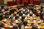 우원식 국회의장과 여야 의원들이 30일 오후 서울 여의도 국회에서 열린 제430회 국회(임시회) 제3차 본회의 종료 후 국민에게 인사를 하고 있다. 이날 국회는 본회의에서 김호철 감사원장 후보자 임명동의안 등 10건의 법안을 처리했다. 일요시사=천재율 기자(1000jae@ilyosisa.co.kr) <1000jae@ilyosisa.co.kr>