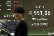 코스피가 장중 첫 4,600선을 돌파한 7일 오후 서울 중구 하나은행 딜링룸에 코스피 종가 4,551.06 포인트를 나타내고 있다. 이날 코스피는 장중 첫 4,600선을 돌파했다. 종가는 전 거래일보다 0.57% 오른 4,551.06포인트에 마감됐다. 일요시사=고성준 기자(joonko1@ilyosisa.co.kr) <joonko1@ilyosisa.co.kr>