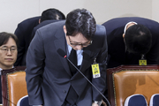 이재원 빗썸 대표이사와 관계자들이 11일 서울 여의도 국회에서 열린 정무위원회 전체회의 중 고개숙여 사과하고 있다. 이날 정무위는 빗썸 관련 긴급 현안질의를 이어간다. 최근 빗썸은 1월 22일부터 31일 사이 10만 원 이상 거래 고객을 대상으로 추첨을 통해 2000원에서 5만 원 상당의 비트코인을 지급하는 행사를 열었으나, 60조 원대의 비트코인 오지급 사태를 일으키며 물의를 빚었다. 일요시사=고성준 기자(joonko1@ilyosisa.co.kr) <joonko1@ilyosisa.co.kr>