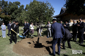[포토] 우원식 국회의장·노사 5단체 '대추나무 식수'