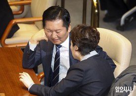 [포토] 본회의 중 대화 나누는 정청래-이언주