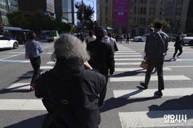 [포토] 아침 온도 5도 안팎···‘두터운 외투 챙기세요’