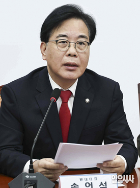 [포토] 안경 고쳐쓰는 송언석 원내대표