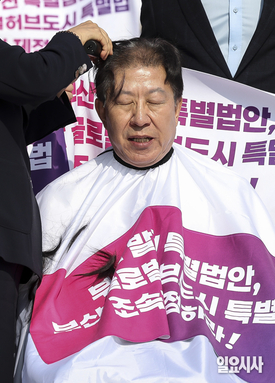 [포토] 박형준 부산시장 '여의도 찾아 삭발'