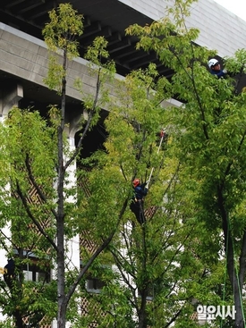 [사진으로 본 세상] ‘겨울 잘 나게’ 가로수 이발 중