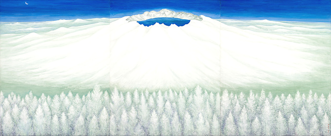 이숙자는 50세가 되던 1992년, 본인의 화두였던 ‘한국성’을 구현할 수 있는 기념비적인 작업을 남기고자 백두산을 그리기 시작했다. 이후 1999년, 직접 백두산을 등정한 후에야 백두산 천지의 모습을 담은 채색화 ‘백두산’(2001)을 완성할 수 있었다. 이 작품은 가로 길이만 약 15m에 달하는 대작이다.