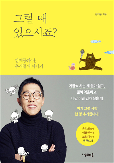 내가 아플 때 누군가는 내 옆에 있어줄 것이라는 믿음. 그것이야말로 세상을 살 만하게 만드는 것들일 수 있다. 저자 김제동은 책을 통해 읽는 이에게 그런 희망을 전하고자 <그럴 때 있으시죠?>를 썼다고 한다. 무언가 불안하고 불편한 것이 있지만 뭐가 불안한 지 모를 때, 피곤해 죽을 만큼 일하고 있지만 과연 내가 잘 살고 있는 지에 대한 의문, 가족을 사랑하긴 하지만 만나면 도망가고 싶은 하루도 쉬울 날 없는 나날들. 이 책에 담긴 내용들은 마치 ‘나’의 마음 속 비밀일기를 들킨 것처럼 공감되는 우리 모두의 이야기를 담고 있다.
