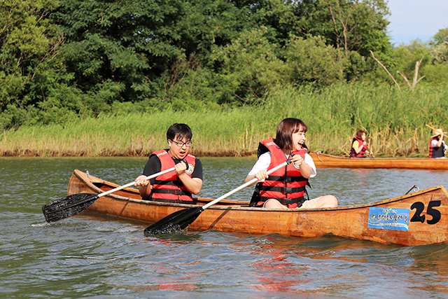 춘천중도물레길 조윤호 이사는 춘천 물레길이 ‘한국인이 꼭 가봐야 할 한국 관광 100선’에 꼽힌 이유를 설명한다. “적삼나무로 만든 카누는 플라스틱 카누보다 견고하고, 중심 잡기도 수월해요. 카누는 36개월 이상 어린이부터 80세 노인까지 남녀노소 누구나 가능한 수상 레포츠라 더없이 좋습니다.”